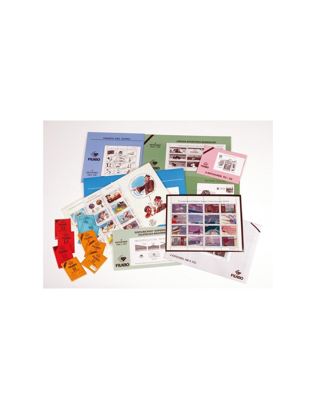 Estuches protectores Filabo fabricados en fibra de Polyestirol neutro que garantizan la conservación del sello evitando alteraciones de la tinta, adherencias y humedades. Con soldadura en la parte inferior para mantener la fijación del sello. Realizado en material antireflectante para evitar los reflejos de luz.