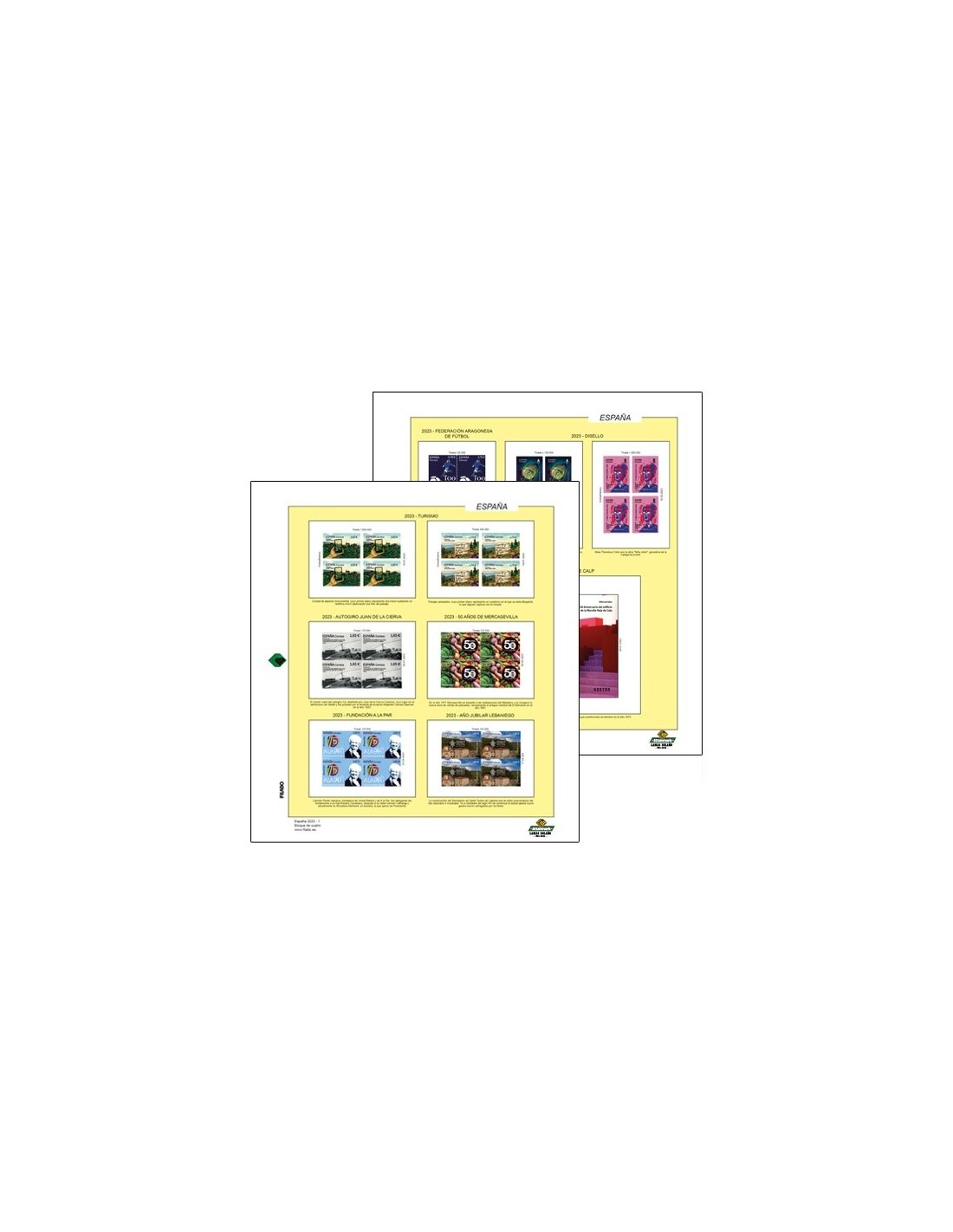 Para colocar los sellos recortados, minipliegos, enteros postales, etc.) deberá adquirir las hojas complementarias ya que en el año básico no están incluidas.