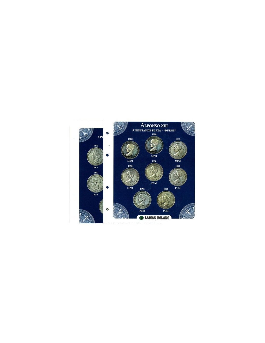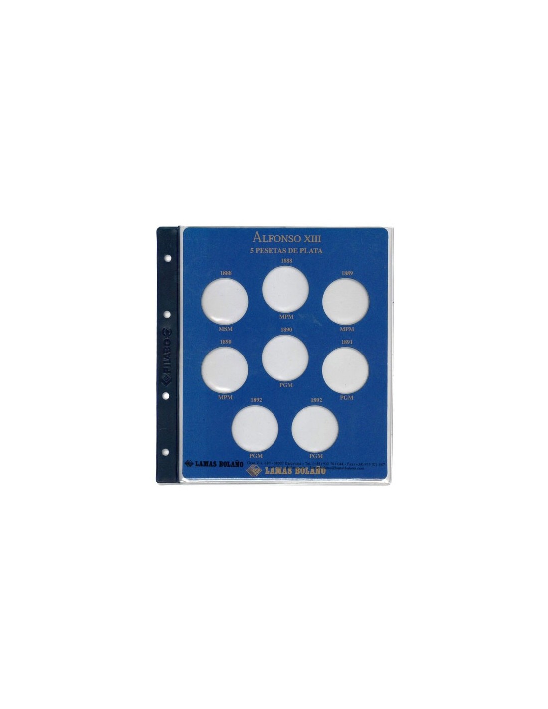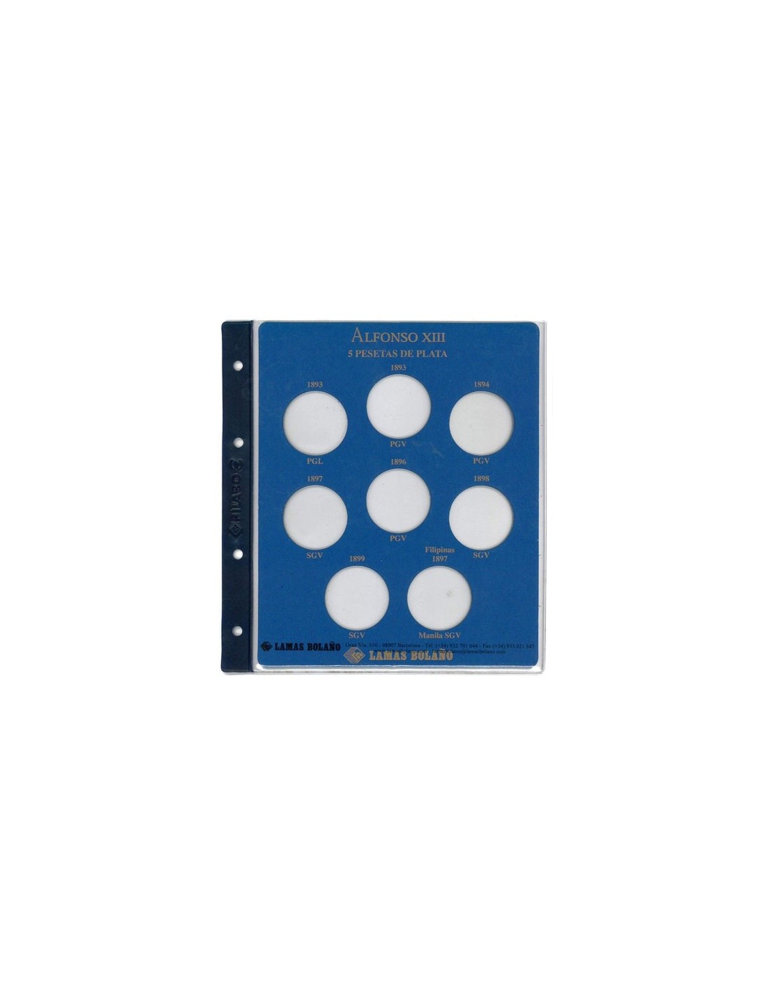 Hojas y fichas técnicas para colocar las monedas de 5 Pesetas del Reinado de Alfonxo XIII: