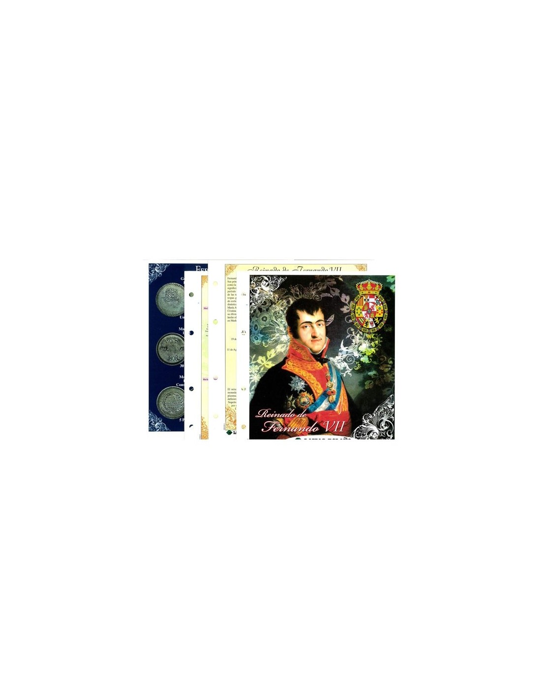 Hojas y fichas técnicas para colocar las monedas de 5 Pesetas y 30 Sous del Reinado de Fernando VII: